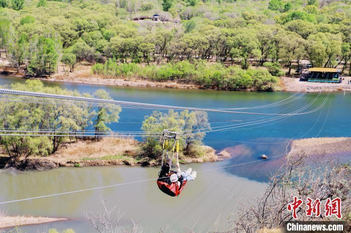 游客在洮兒河國家濕地公園暢玩滑索。興安盟融媒體中心供圖