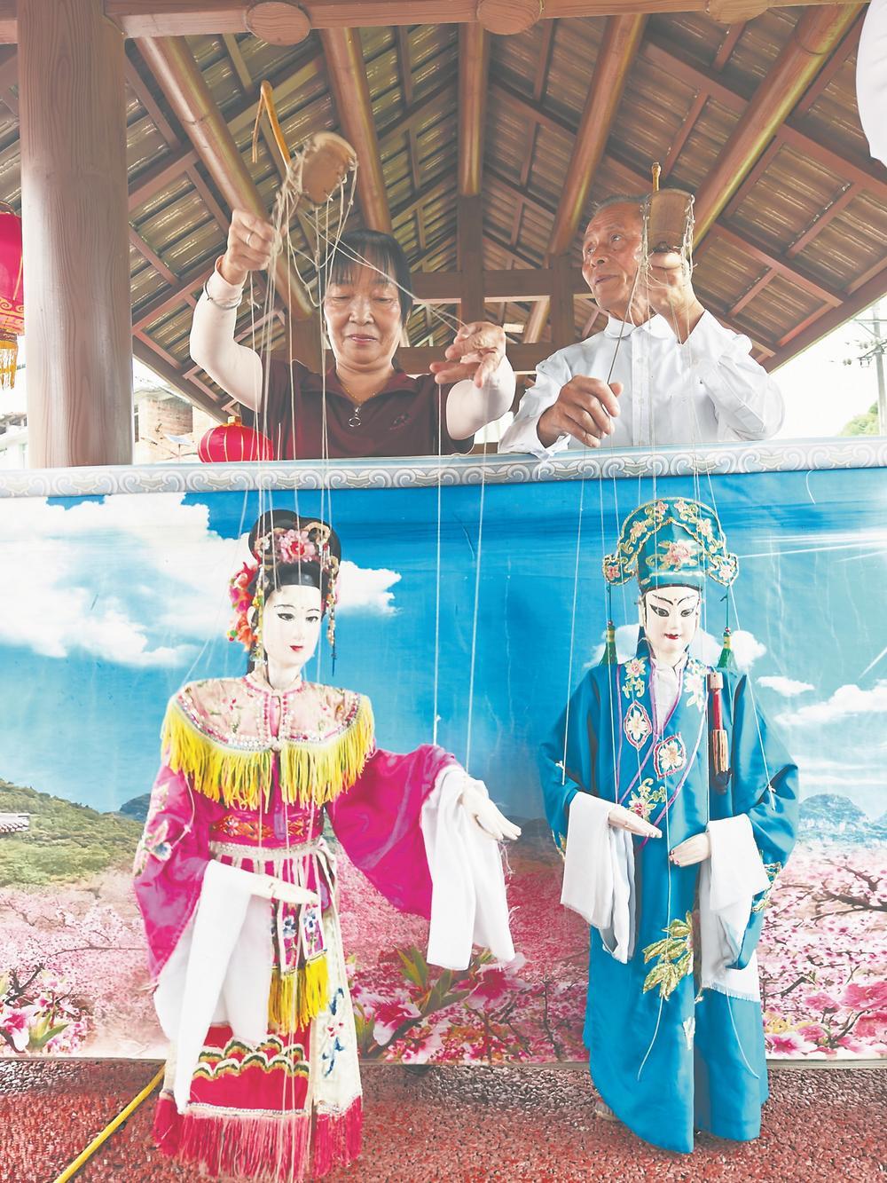 在建寧縣中畬村,文藝志愿者帶來(lái)木偶戲表演。