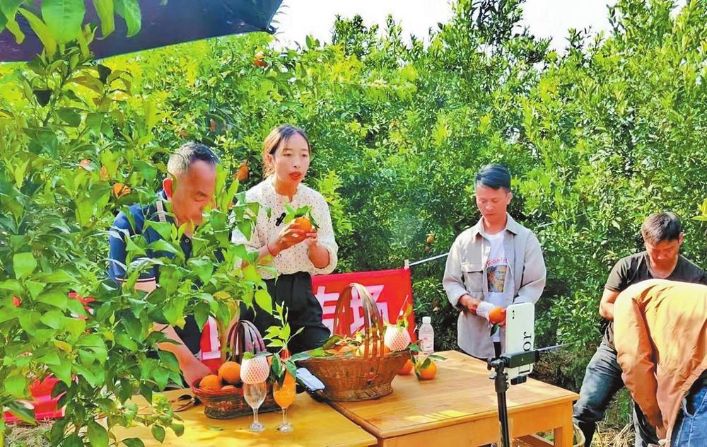 直播團(tuán)隊在龍陵的果園直播銷售農(nóng)產(chǎn)品。通訊員 宋竹節(jié) 攝