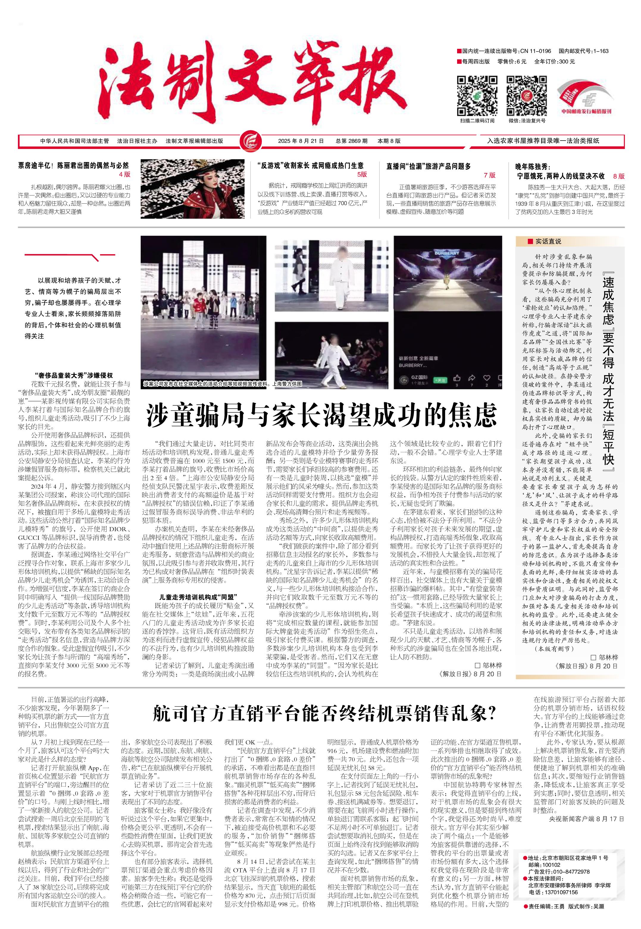 2025年8月21日《法制文萃報(bào)》總第2869期1版