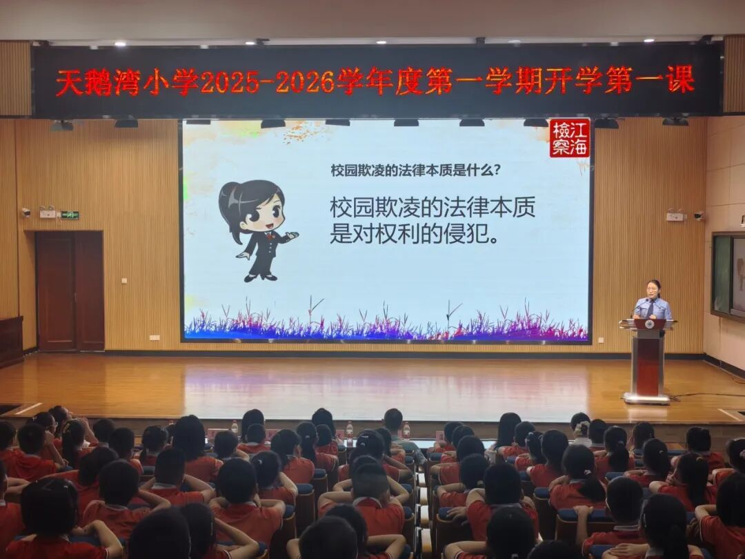 9月,新學期如約而至,廣東省江門市江海區(qū)人民檢察院“藍色港灣”未成年人檢察工作品牌再次溫暖啟航,持續(xù)發(fā)揮檢察力量,守護青春成長。法治副校長與青年法治宣講團成員相繼走進滘頭小學、天鵝灣小學、禮樂中心小學、新聯(lián)小學、陽光學校及江門市工貿(mào)職業(yè)技術(shù)學校,為孩子們量身打造了一堂堂生動而深刻的“開學第一課”,用專業(yè)的法律知識和司法溫度,為青春之路筑起堅實的法治屏障。
