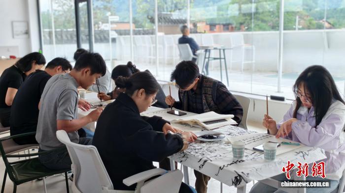 10月7日,秦托邦青年社區(qū)成員正在進行書法體驗。受訪者供圖