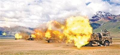 “占領陣地!”隨著指揮員一聲令下,官兵們如離弦之箭,快速奔赴戰(zhàn)位。構筑工事、偵察目標、測定速度、標定諸元……霎時,火炮怒吼,彈雨直撲標識區(qū)域。