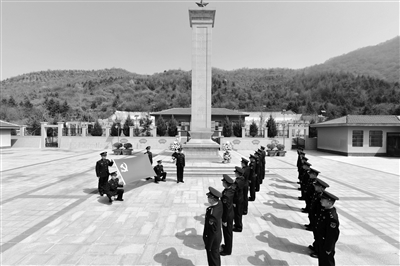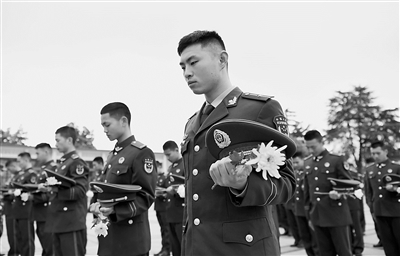 近日,武警安徽總隊合肥支隊機動一中隊組織官兵來到蜀山烈士陵園,開展祭奠活動,傳承紅色基因。本報特約記者 徐偉 攝