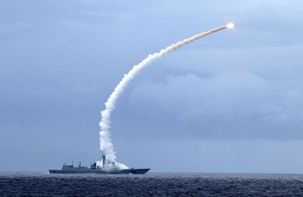 海口艦發(fā)射對空導(dǎo)彈攔截目標(biāo)。李章龍 攝