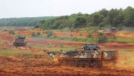 海軍陸戰(zhàn)隊(duì)步坦協(xié)同奪取縱深陣地。余文強(qiáng) 攝