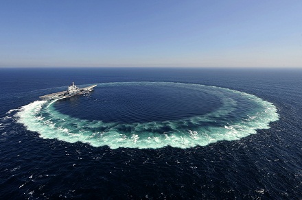 山東艦進(jìn)行大舵角試驗(yàn)。李剛 攝