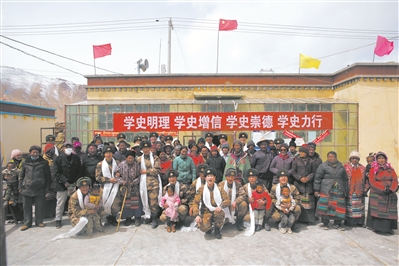 “紅軍長征經(jīng)過藏區(qū)時,藏族同胞主動把青稞、鹽和紅糖送給紅軍,并冒著生命危險運(yùn)送糧食和物資……”在軍民學(xué)黨史主題活動現(xiàn)場,教導(dǎo)員王文卿講述的故事,讓官兵和村民深受感動。