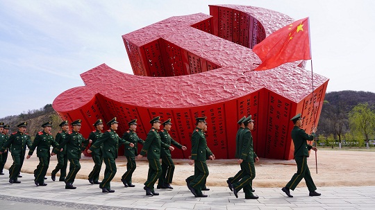 圖為武警延安支隊執(zhí)勤一中隊官兵開展主題黨日活動。 黨鵬鑫 攝