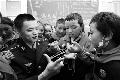 西藏軍區(qū)邊防某團官兵與駐地小學學生開展聯(lián)誼活動。張志輝攝
