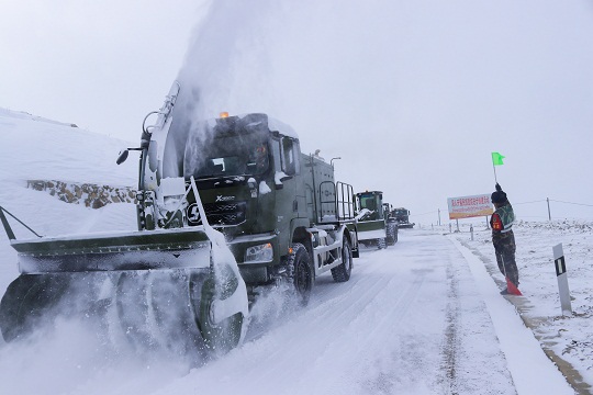 因?yàn)?zāi)害現(xiàn)場(chǎng)地處平均海拔4000多米以上海拔,持續(xù)降雪不斷,加之氣溫低至零下20多攝氏度,給整個(gè)道路搶通工作帶來了不少難度。為盡快清理路面積雪搶通道路,武警官兵采取“人歇機(jī)不停、分段搶通、先通后拓”的方法進(jìn)行全力搶通,克服了高寒缺氧及紫外線強(qiáng)烈等重重困難。