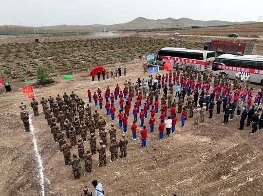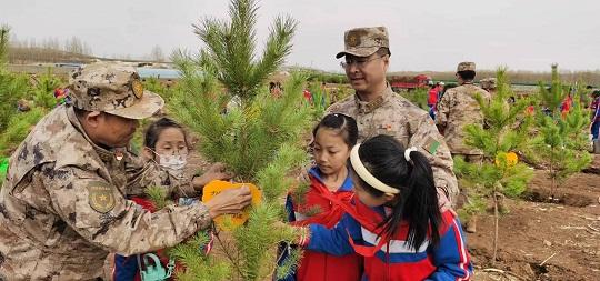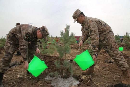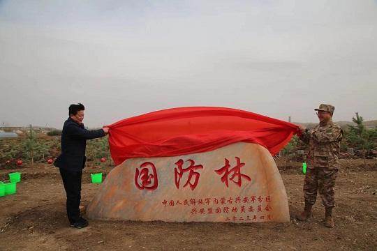 4月28日,在大興安嶺南麓科爾沁右翼前旗科爾沁鎮(zhèn),內(nèi)蒙古興安軍分區(qū)聯(lián)合興安盟國(guó)防動(dòng)員委員會(huì)舉行“國(guó)防林”建設(shè)揭牌儀式和群眾性植樹活動(dòng),現(xiàn)役官兵、文職人員、民兵和部分學(xué)校師生,大家一同為綠色興安充“植”。