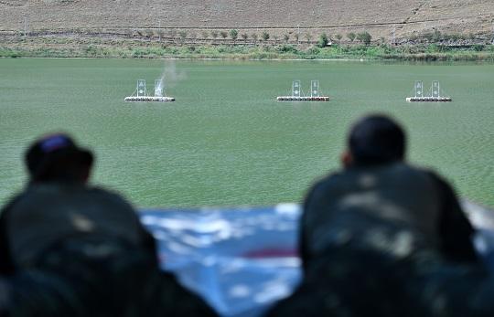 圖為參賽選手進(jìn)行水上狙擊課目競賽。侯崇慧 攝