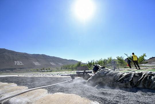 圖為參賽選手進(jìn)行陣地轉(zhuǎn)換狙擊課目競賽。徐偉 攝