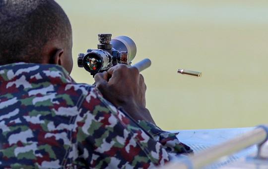 圖為參賽選手進(jìn)行多種姿勢狙擊課目競賽。安曉惠 攝