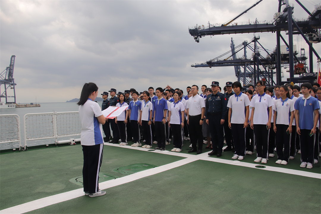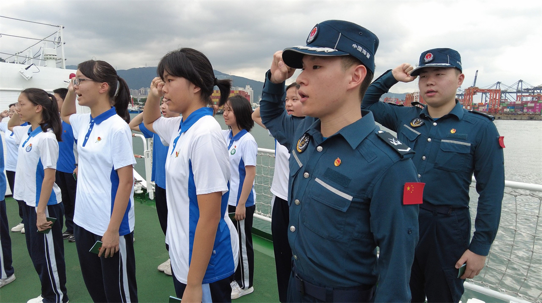 “我志愿加入中國共產(chǎn)主義青年團,堅決擁護中國共產(chǎn)黨的領(lǐng)導(dǎo)……”一聲聲堅定的誓言回蕩在大海上。五四青年節(jié)到來之際,廣東深圳海警局會同共青團羅湖區(qū)委員會、羅湖區(qū)教育局及翠園教育集團數(shù)十名學生代表,在深圳東部海域開展“青春心向黨·筑夢新時代”主題團日活動暨羅湖區(qū)愛國主義教育綜合實踐基地揭牌儀式,引領(lǐng)廣大青少年弘揚“五四”精神,感悟初心使命。