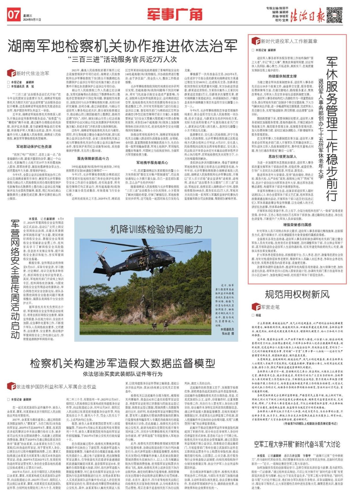 推進(jìn)軍休老年大學(xué)建設(shè)。堅持“政治建校、特色立校、服務(wù)興校、從嚴(yán)治校”原則,按照線上線下“兩線”布局,在27個省份創(chuàng)辦75所軍休老年大學(xué),推出軍休思政精品課程,構(gòu)建軍休干部老年教育新陣地。
