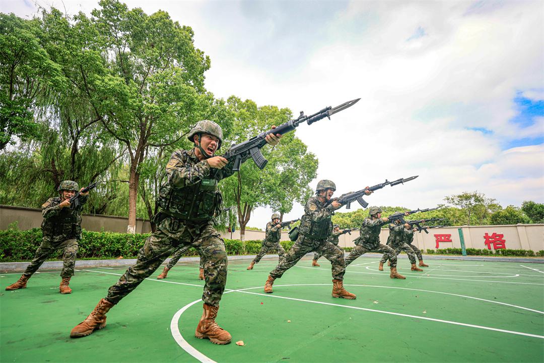 圖為中隊官兵進行刺殺訓(xùn)練。