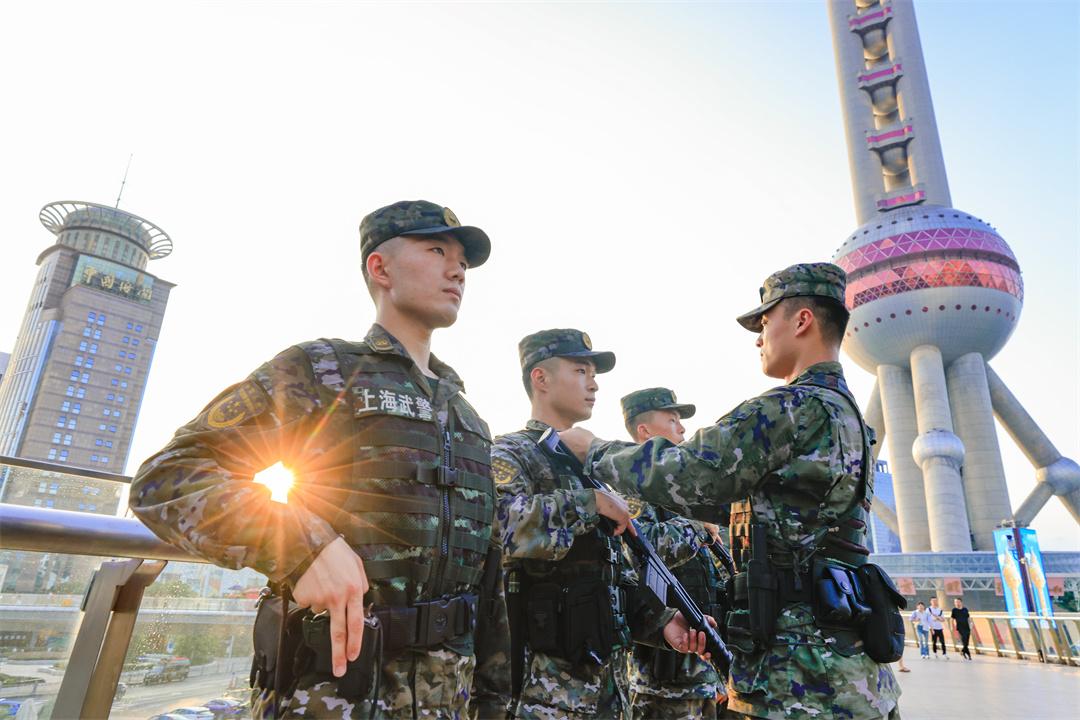 圖為中隊官兵在陸家嘴環(huán)島定點駐守執(zhí)勤。