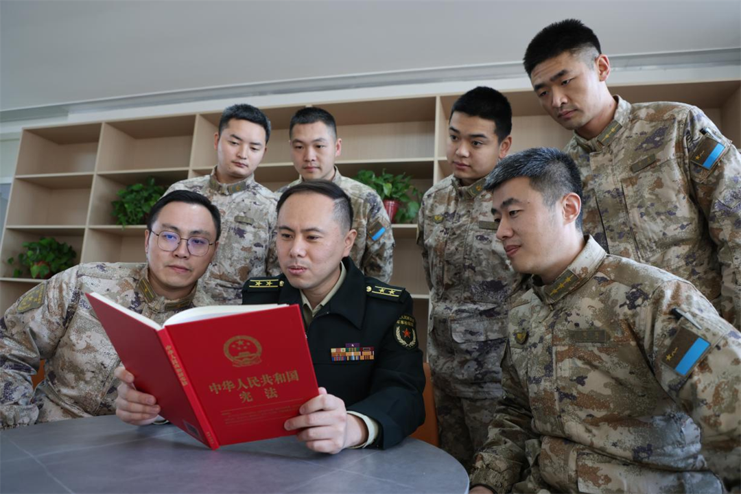 在陸軍某炮兵旅,法治服務(wù)小分隊(duì)深入班排、訓(xùn)練場(chǎng)、閱覽室,為戰(zhàn)士們普及憲法知識(shí)。