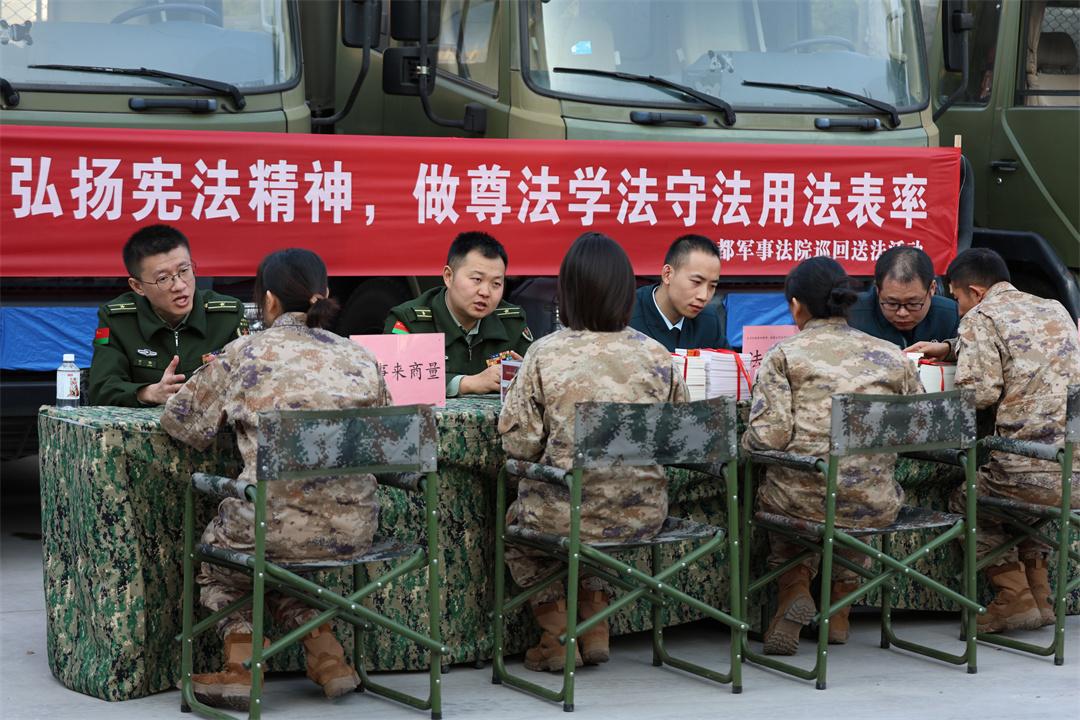 活動(dòng)期間,成都軍事法院與武警某支隊(duì)簽訂共同推進(jìn)依法治軍合作協(xié)議,在共建一個(gè)長效機(jī)制、開展一輪法治宣講、聯(lián)創(chuàng)一家解紛工作室、解決一批疑難問題、培養(yǎng)一支人才隊(duì)伍5個(gè)方面達(dá)成共識(shí);結(jié)合案轄單位和承辦案件特點(diǎn)規(guī)律,首次試點(diǎn)探索不同行業(yè)領(lǐng)域單位法治宣傳教育模式。