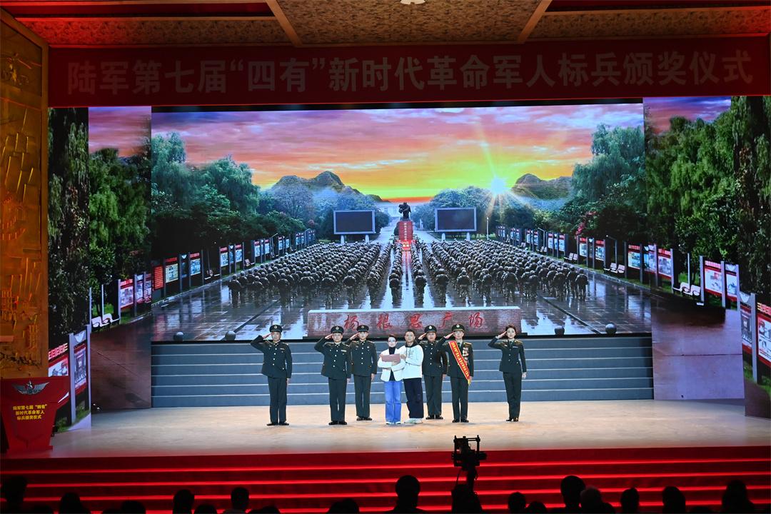 頒獎儀式以“忠誠奮斗”為主題,區(qū)分忠誠、勝戰(zhàn)、使命3個篇章,精心設(shè)置播放標(biāo)兵事跡短片、宣讀頒獎詞、組織現(xiàn)場訪談、進(jìn)行文藝展演等環(huán)節(jié),立體反映陸軍官兵鐵心向黨鑄忠誠、同心奮進(jìn)擔(dān)使命的風(fēng)采風(fēng)貌和成果成效,充分展示陸軍“四有”新時代革命軍人標(biāo)兵的感人事跡和家國情懷。