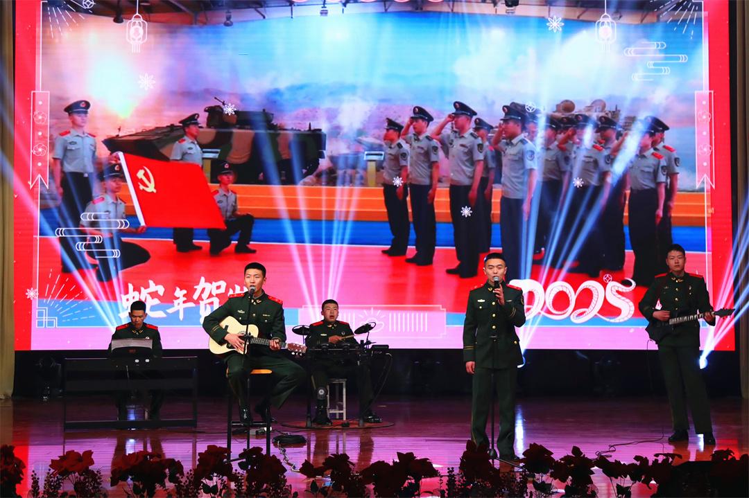 喜慶的腰鼓、歡快的舞獅、民族樂曲……文藝匯演以歌舞《新的一年》拉開序幕,“一隊一品”特色文化隊伍相交相融,展示了官兵激昂的精神風貌。此次文藝匯演以部隊練兵備戰(zhàn)、安全管理、文化建設、軍民魚水情等為素材,通過“兵寫兵、兵演兵、兵唱兵”的形式,反映部隊建設成果、講述官兵暖心故事、營造節(jié)日濃厚氛圍,非遺表演、樂隊奏唱、小品續(xù)集、情景劇場等節(jié)目輪番上演,精彩紛呈,現場氛圍歡樂祥和。