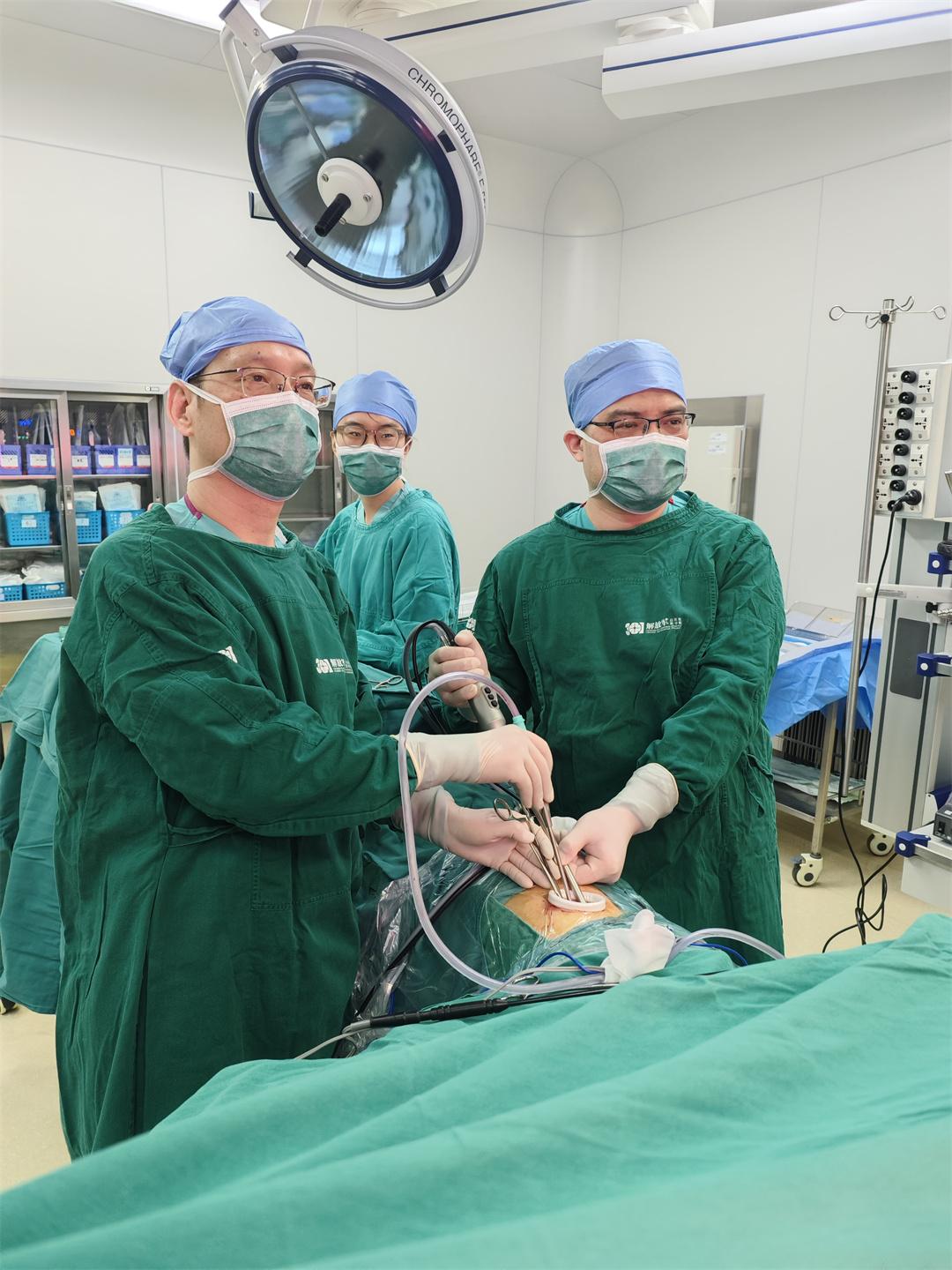 宋偉安帶領團隊反復研究胸部CT和病情資料,并與麻醉科、外科ICU等多學科協(xié)作,制定詳細的圍手術期應急預案。今年2月19日下午,手術開始。在胸腔鏡輔助下,宋偉安團隊精準操作,逐步完成開胸、剖開心包、游離神經、分離肺動脈圓錐、阻斷肺動脈主干等關鍵步驟。經過3個多小時努力,團隊成功切除肺門根部侵入心包的惡性腫瘤,并徹底清掃了轉移的淋巴結。
