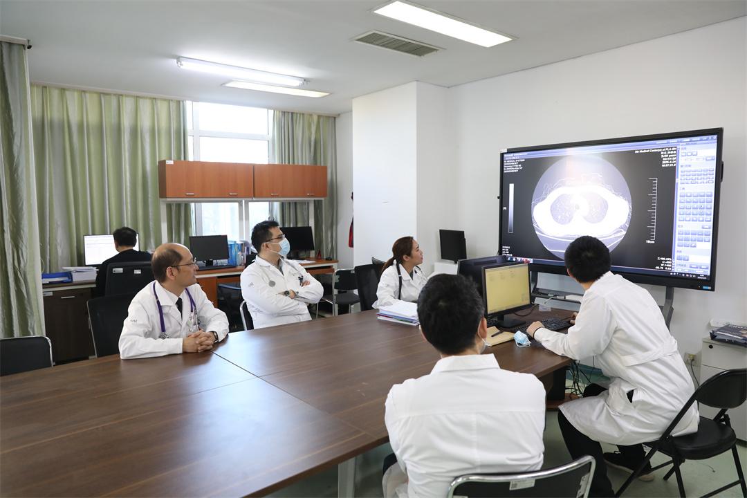 圖為胸外科主任宋偉安帶領團隊研究胸部CT和病情資料。