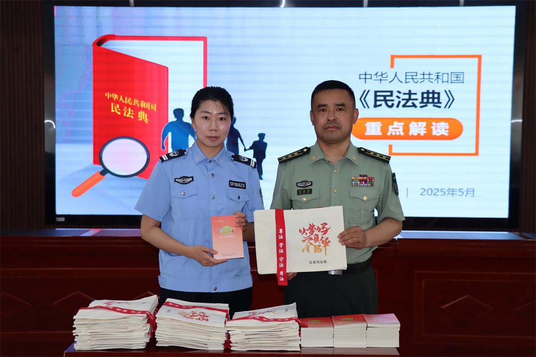 近日,山西省朔州市應(yīng)縣人民武裝部聯(lián)合應(yīng)縣司法局,開(kāi)展“民法典進(jìn)軍營(yíng)”主題活動(dòng),通過(guò)法治宣講、法律咨詢、贈(zèng)書(shū)答疑等形式,為官兵送上一堂生動(dòng)的法治教育課。