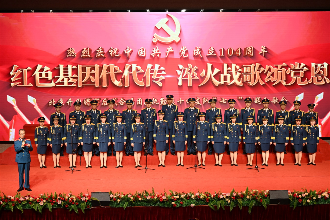 為熱烈慶祝中國共產(chǎn)黨成立104周年,近日,武警北京總隊執(zhí)勤第十四支隊特邀北京開國將軍后代合唱團,共同舉辦“紅色基因代代傳 淬火戰(zhàn)歌頌黨恩”七一主題紅歌會,用歌聲講述黨的歷史,以旋律重溫光榮歲月。