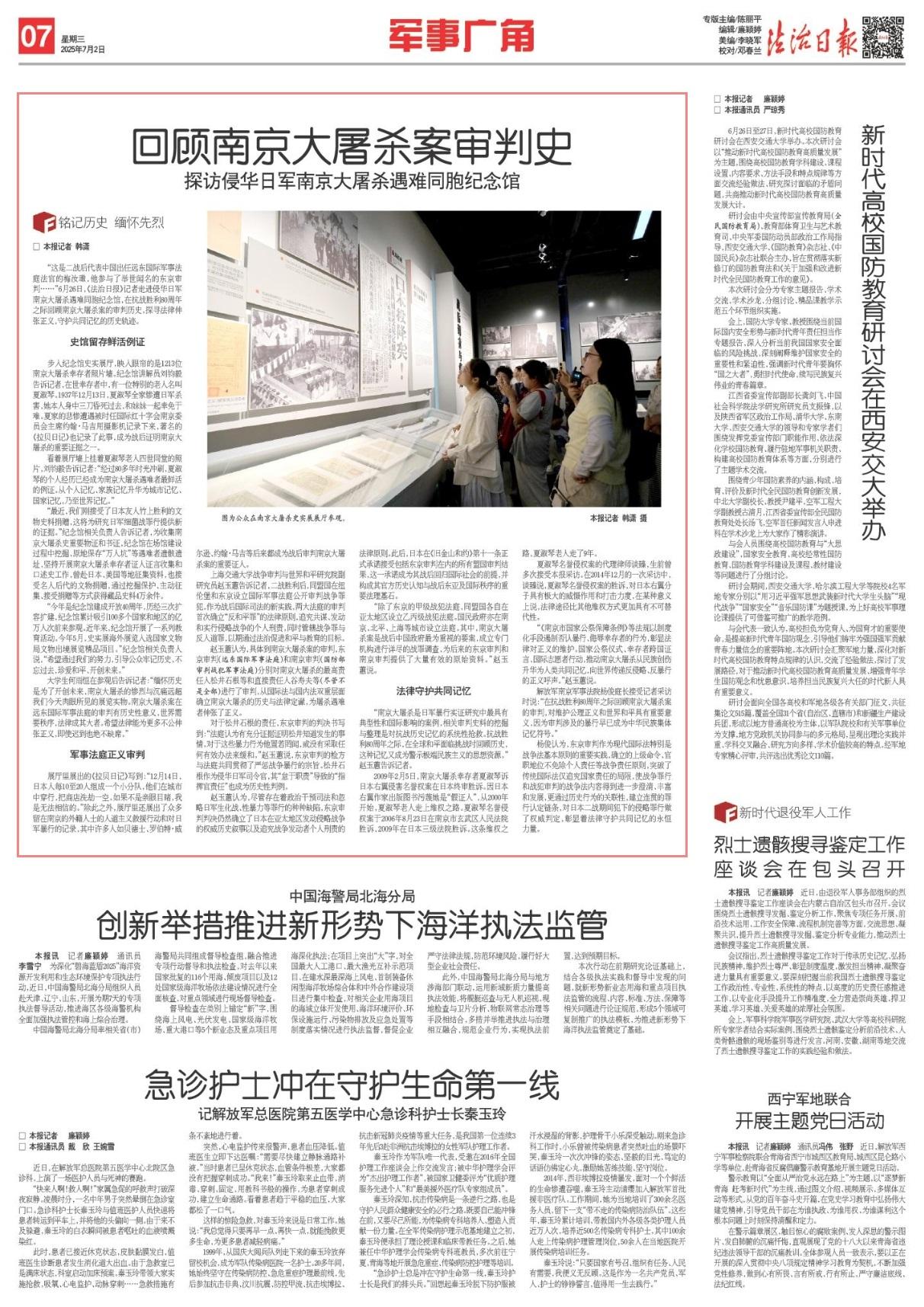 解放軍南京軍事法院楊俊庭長接受記者采訪時說:“在抗戰(zhàn)勝利80周年之際回顧南京大屠殺案的審判,對維護公理正義和世界和平具有重要意義,因為審判涉及的暴行早已成為中華民族集體記憶符號。”