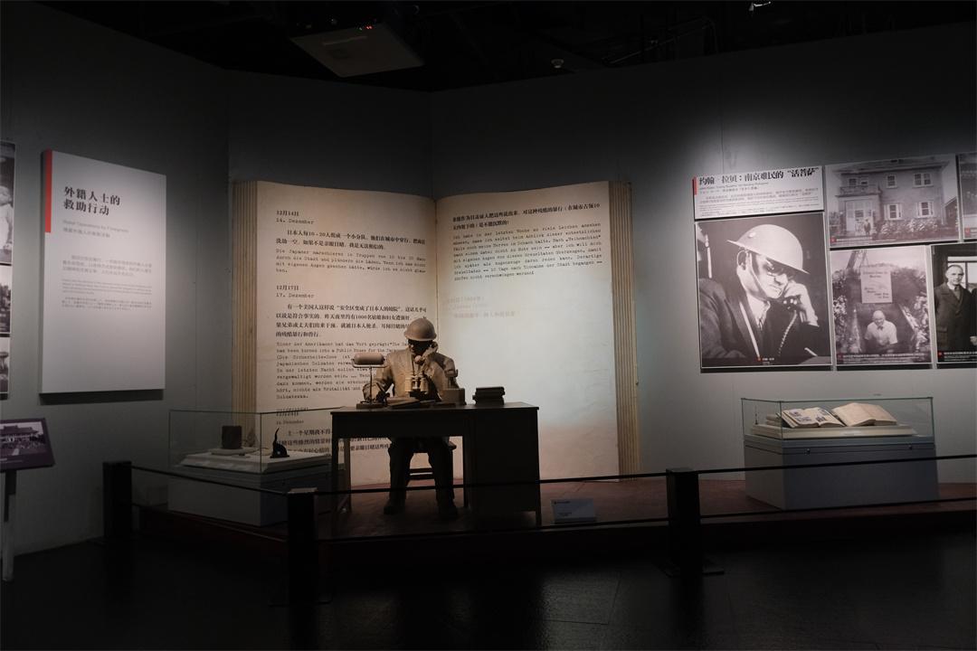 展廳里展出的《拉貝日記》寫到:“12月14日,日本人每10至20人組成一個小分隊,他們在城市中穿行,把商店洗劫一空。如果不是親眼目睹,我是無法相信的。”除此之外,展廳里還展出了眾多留在南京的外籍人士的人道主義救援行動和對日軍暴行的記錄,其中許多人如貝德士、羅伯特·威爾遜、約翰·馬吉等后來都成為戰(zhàn)后審判南京大屠殺案的重要證人。