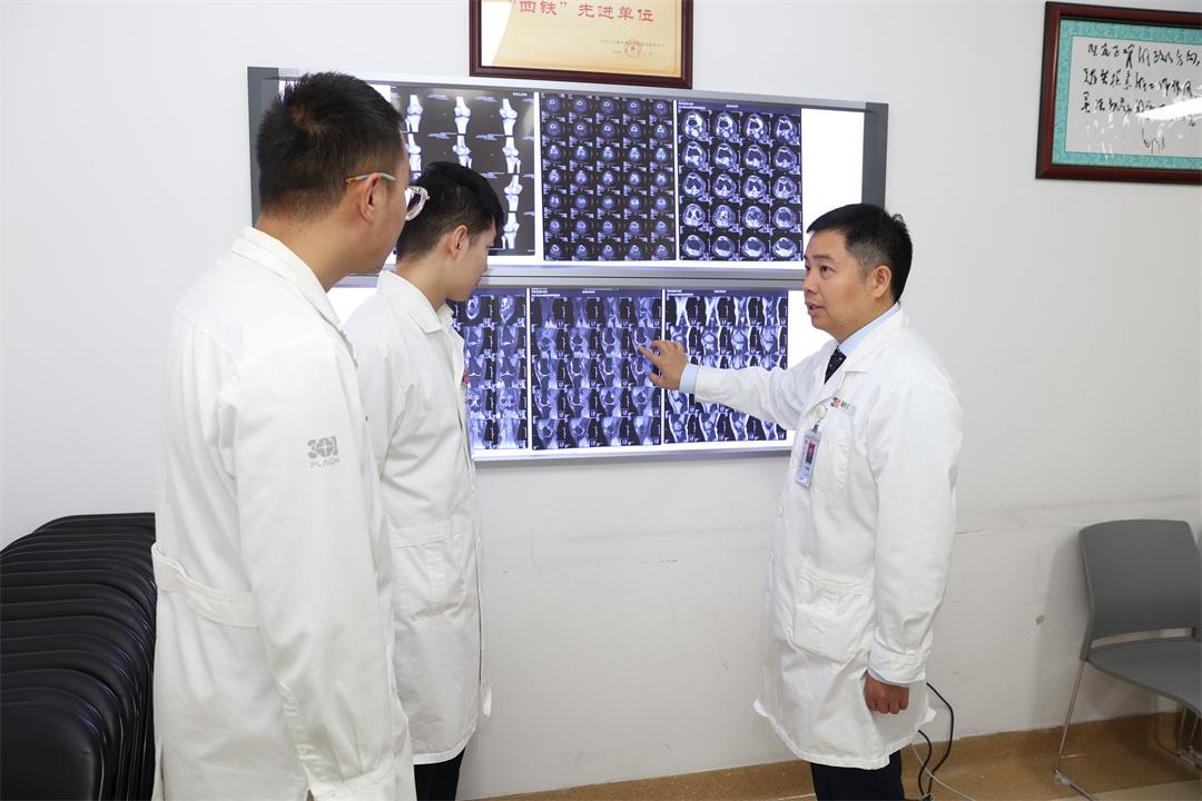 圖為李海鵬副主任醫(yī)師團隊查看患者片子,討論病情,研究治療方案。范萍 攝