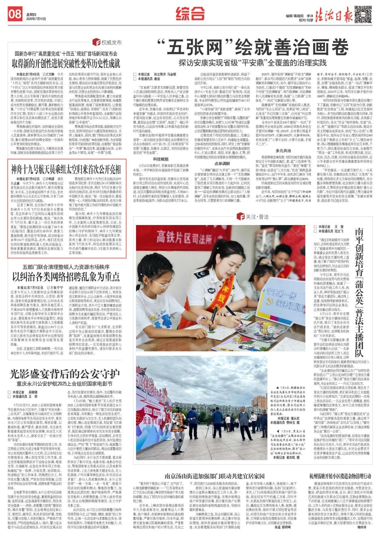 7月9日下午,神舟十九號(hào)乘組與記者見(jiàn)面會(huì)在北京航天城舉行。航天員蔡旭哲、宋令東、王浩澤返回兩個(gè)多月后,首次面向媒體與公眾正式公開(kāi)亮相,分享了183天太空駐留的經(jīng)歷與感悟。