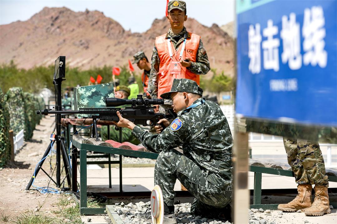 圖為7月15日,“鋒刃-2025”國際狙擊手射擊競賽在新疆烏魯木齊武警部隊某訓(xùn)練基地開幕。圖為開幕式后,參賽隊員進行多種姿勢課目競賽。馬士寶 攝