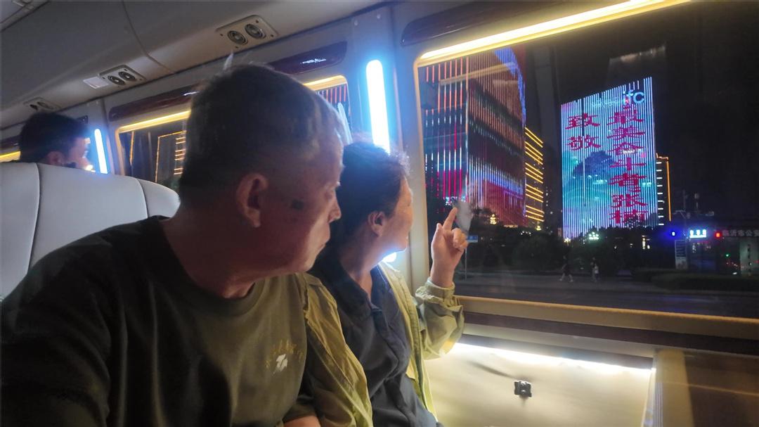圖為張楠父母乘車參加“為英烈亮燈”活動(dòng)。