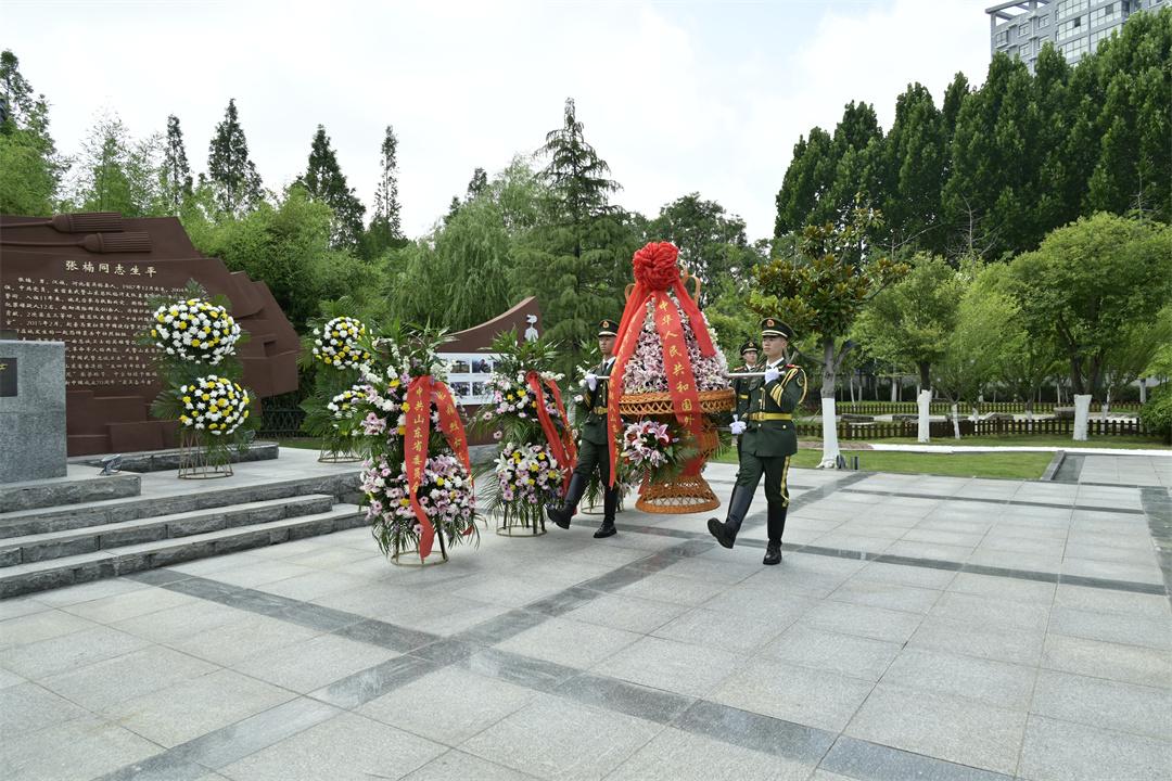 國(guó)歌聲落,全體肅立,向這位為祖國(guó)外交事業(yè)獻(xiàn)出生命的英雄默哀致敬。默哀畢,《獻(xiàn)花曲》深情奏響。禮兵邁著沉穩(wěn)有力的正步,穩(wěn)穩(wěn)抬起寄托緬懷與敬意的花籃,緩步走向烈士雕像基座,整齊擺放在雕像前。現(xiàn)場(chǎng)領(lǐng)導(dǎo)緩步上前,仔細(xì)整理著緞帶,以此表達(dá)對(duì)英烈的崇敬之情。