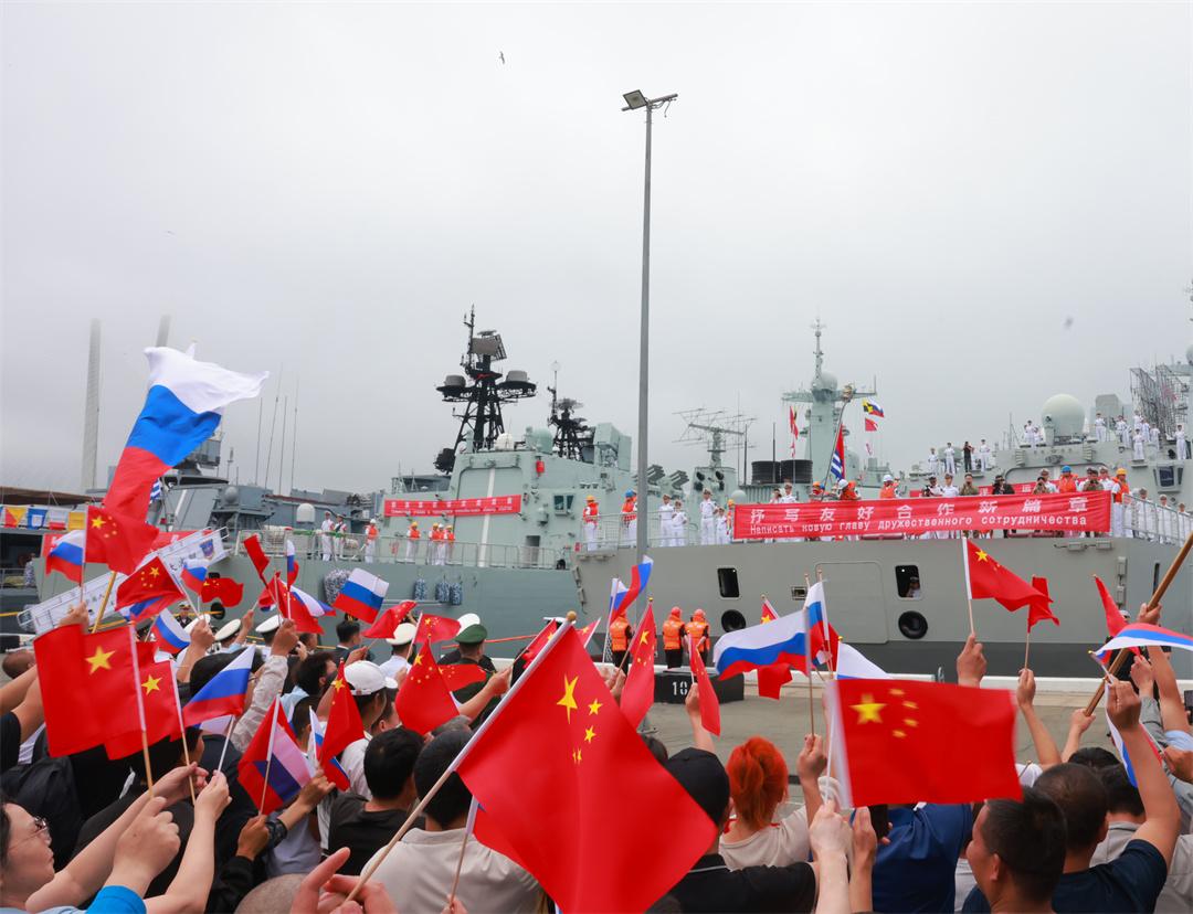 圖為抵達符拉迪沃斯托克后,中國艦艇編隊受到熱烈歡迎。黨文彬 攝