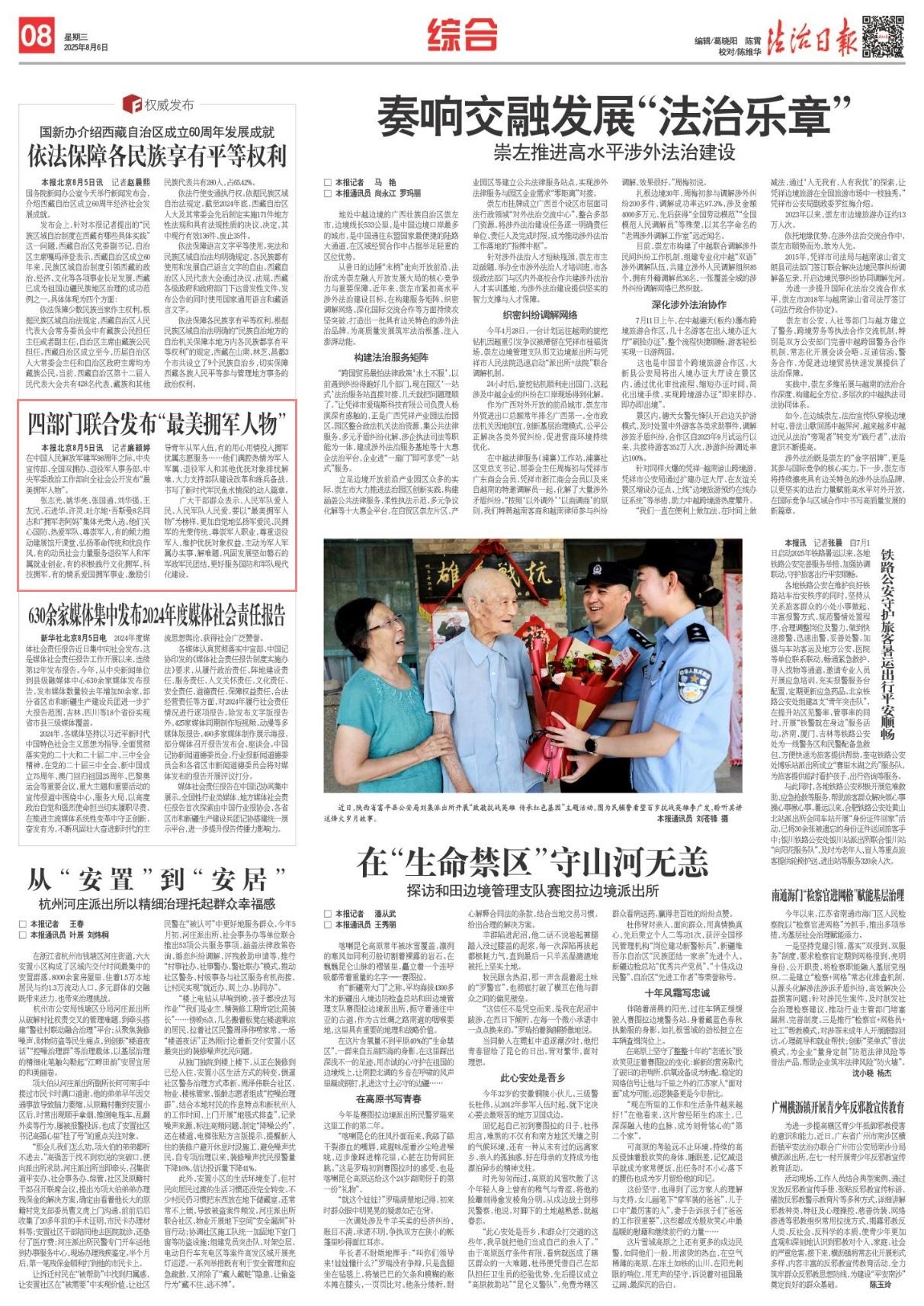 張志光、姚華亮、張國通、劉華強(qiáng)、王友民、石進(jìn)華、許靈、吐爾地·吾斯曼8名同志和“擁軍老阿媽”集體光榮入選。他們關(guān)心國防、熱愛軍隊(duì)、尊崇軍人,有的傾力推動(dòng)建展館開課堂、弘揚(yáng)革命傳統(tǒng)和優(yōu)良作風(fēng),有的動(dòng)員社會(huì)力量服務(wù)退役軍人和軍屬就業(yè)創(chuàng)業(yè),有的積極踐行文化擁軍、科技擁軍,有的情系愛國擁軍事業(yè)、激勵(lì)引導(dǎo)青年從軍入伍,有的用心用情投入擁軍優(yōu)屬志愿服務(wù)……他們滿腔熱情為軍人軍屬、退役軍人和其他優(yōu)撫對象排憂解難,大力支持部隊(duì)建設(shè)改革和練兵備戰(zhàn),書寫了新時(shí)代軍民魚水情深的動(dòng)人篇章。