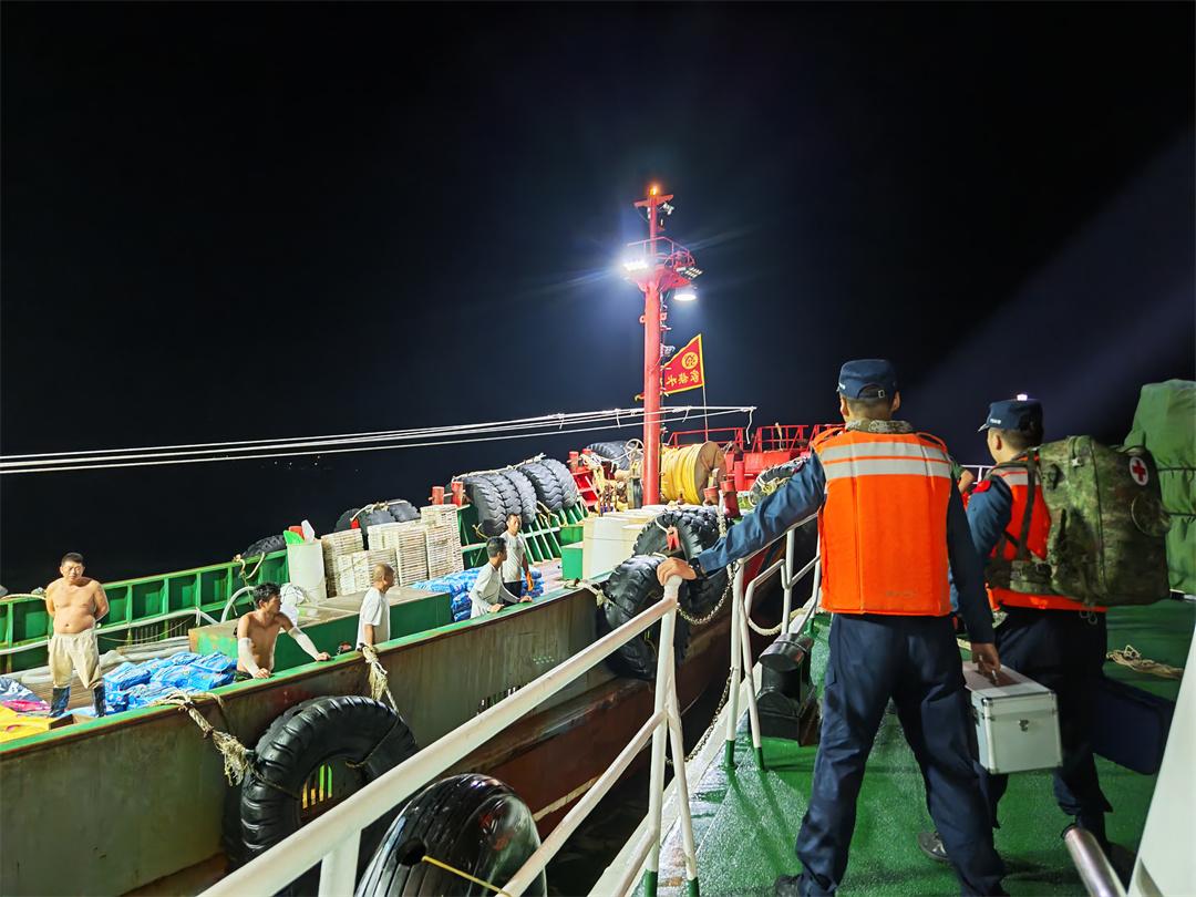 由于夜間航行,海上能見度較差,且事發(fā)海域周邊漁網(wǎng)較多,給航行帶來較大困難,永隆艦執(zhí)法員們憑借出色的駕駛技能和豐富夜航經(jīng)驗(yàn),克服諸多不利因素,穩(wěn)慎駕駛艦艇趕往事發(fā)海域。航行中,執(zhí)法員們通過多種通信方式與求助漁船保持聯(lián)系,動態(tài)掌握船舶位置及傷員情況,隨艦醫(yī)護(hù)人員遠(yuǎn)程指導(dǎo)漁船其他人員為傷者開展先期輔助治療。