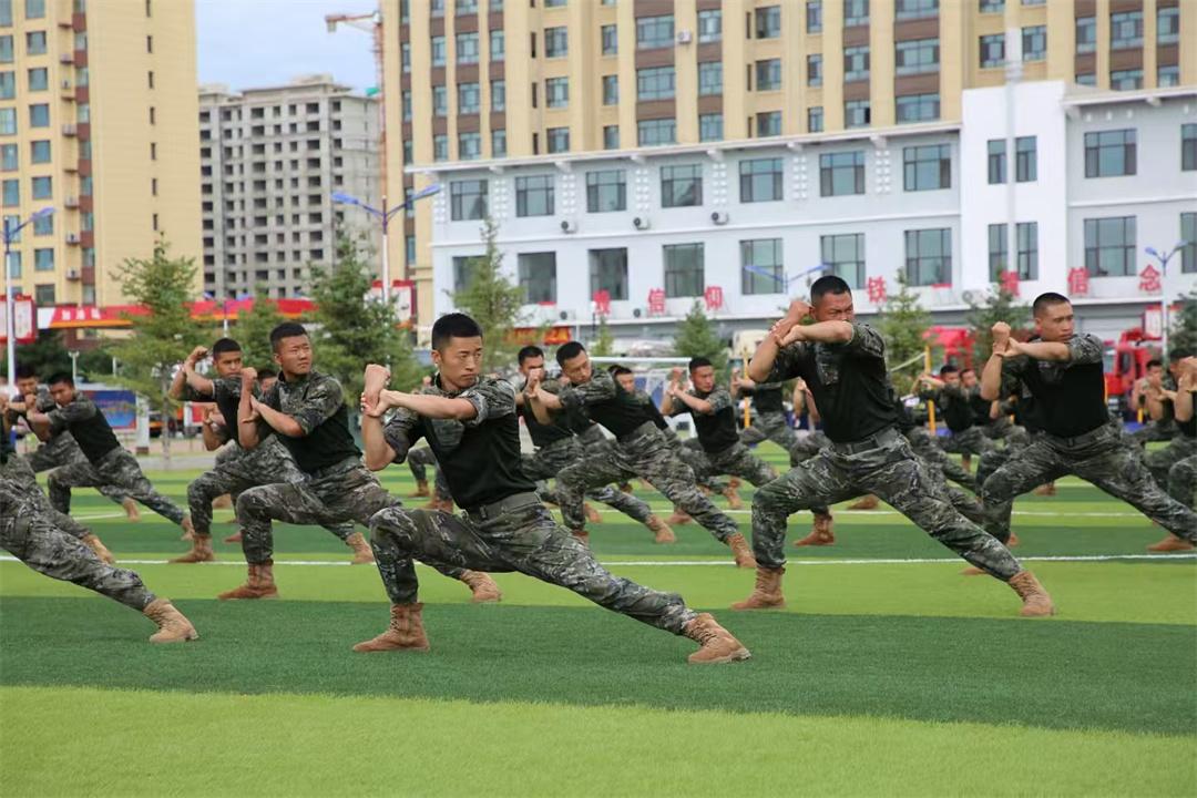 在武警興安支隊課目演示環(huán)節(jié),官兵們擒敵拳、刺殺操等課目霸氣凌厲、氣勢恢宏,展現(xiàn)出嚴謹扎實的戰(zhàn)斗作風(fēng)和奮發(fā)有為的精神風(fēng)貌。