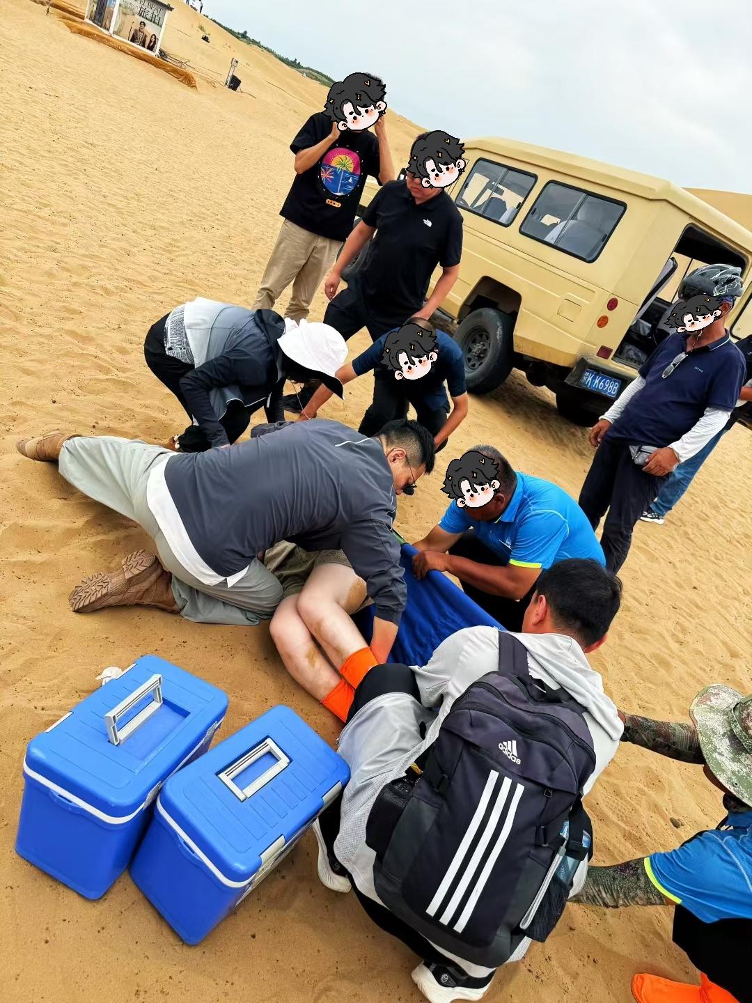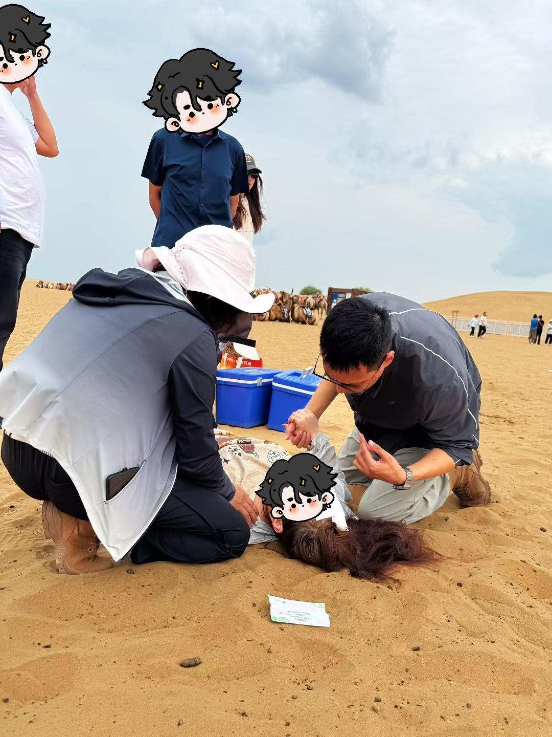 當(dāng)日下午,一名30多歲女游客帶著三歲兒子體驗景區(qū)駱駝騎行項目時,因駱駝突然受驚失衡,母子二人從駝背上墜落倒地,情況十分危急。景區(qū)工作人員雖然第一時間抵達現(xiàn)場,但因缺乏專業(yè)醫(yī)療知識,無法及時進行有效救治。