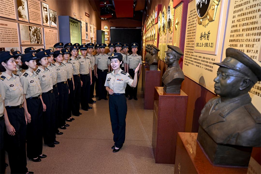 圖為陳東森(右)帶領(lǐng)官兵來到駐地理想信念教育基地,開展現(xiàn)地教育實踐活動。