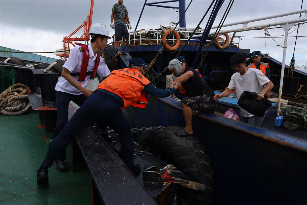 中國海警局直屬第三局橫琴艦接警后立即組織航渡救援,克服夜航能見度較差以及2米海浪的惡劣海況,快速馳援。抵達(dá)現(xiàn)場后,橫琴艦兩名海警醫(yī)務(wù)人員對傷員迅速進(jìn)行救治,實施止血包扎、口服補液等緊急醫(yī)療措施,及時有效穩(wěn)定了傷員狀況。