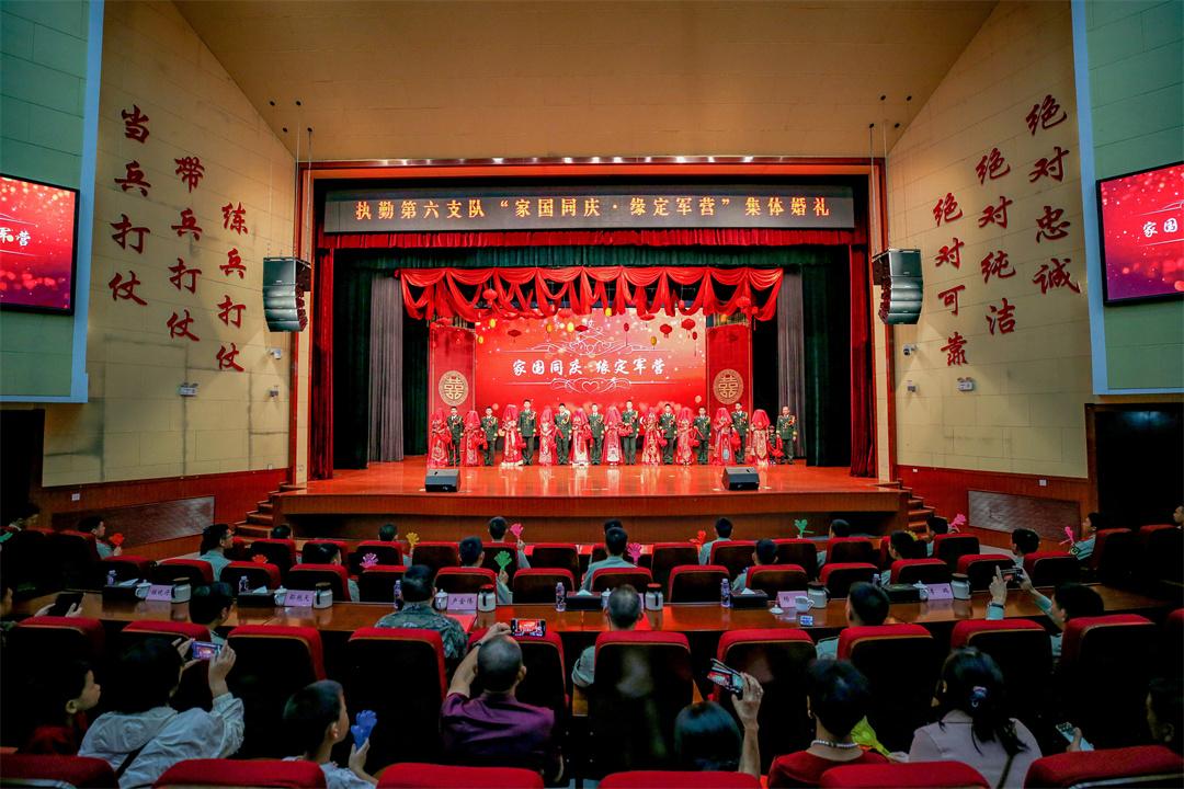 10月1日清晨,秋日的朝陽為營區(qū)鍍上金邊,在舉國歡慶中華人民共和國成立76周年的喜慶日子里,武警北京總隊執(zhí)勤第六支隊營區(qū)內(nèi)彩旗飄揚、禮樂喧天,主題為“家國同慶 緣定軍營”集體婚禮的序曲悄然奏響,10對身著軍裝與嫁衣的新人,在戰(zhàn)友和親屬共同見證下,攜手步入婚姻殿堂,以最真摯的愛意致敬愛情,以最赤誠的初心祝福祖國。