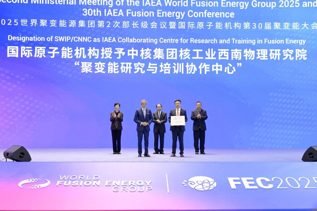 會上,國際原子能機構(gòu)指定中核集團核工業(yè)西南物理研究院為其首個“聚變能研究與培訓(xùn)協(xié)作中心”。