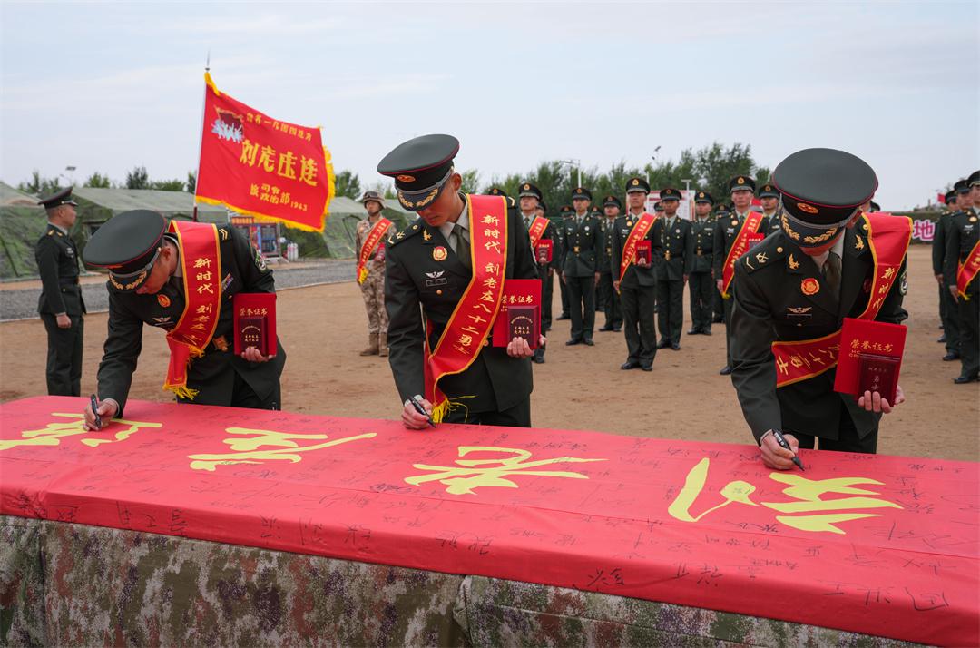 圖為陸軍第82集團(tuán)軍某旅“劉老莊連”舉行“新時(shí)代劉老莊八十二勇士”頒授儀式,這是官兵在勇士旗上簽名。張永進(jìn) 攝