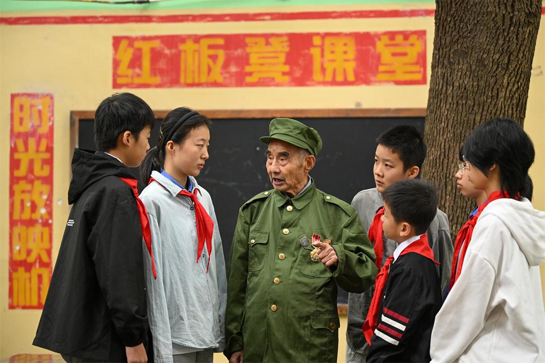 在10月25日中國人民志愿軍抗美援朝出國作戰(zhàn)75周年紀念日到來之際,安徽省合肥市蜀山區(qū)南七街道洪崗社區(qū)“紅板凳課堂”,邀請95歲抗美援朝老兵張秉軸給孩子們講述戰(zhàn)斗故事,引導他們緬懷革命先烈,爭當新時代好少年。