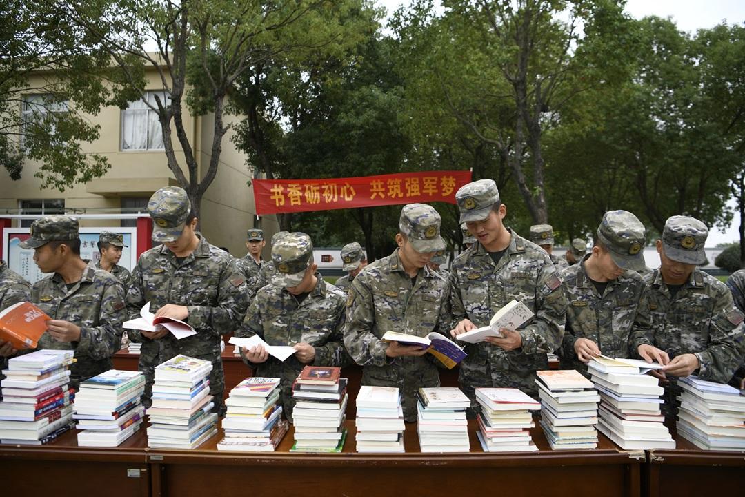圖為官兵們翻看贈(zèng)送的圖書(shū)。